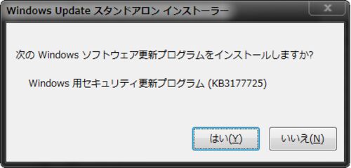 今月もWindows7環境のWindows Updateで時間がかかる問題がある模様。対処方法 ダウンロードセンターからKB3177725を手動でダウンロードする。 https://www.microsoft.com/ja-jp/download/search.aspx?q=KB3177725 ・Windows7 32bit版は、Windows 7 用セキュ…