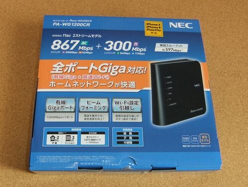 自分の部屋に スマホ、タブレット用の無線LANアクセスポイントが欲しい……というわけで、NECの無線LANルーター(Wi-Fiルーター)、Aterm WG1200CRを買ってみました。今年2月8日発売の新製品です。普及モデルWF1200CRのギガビット対応版という感じで、100Mbps以…