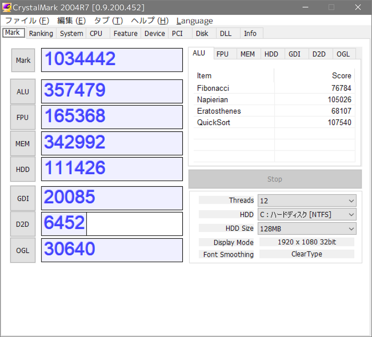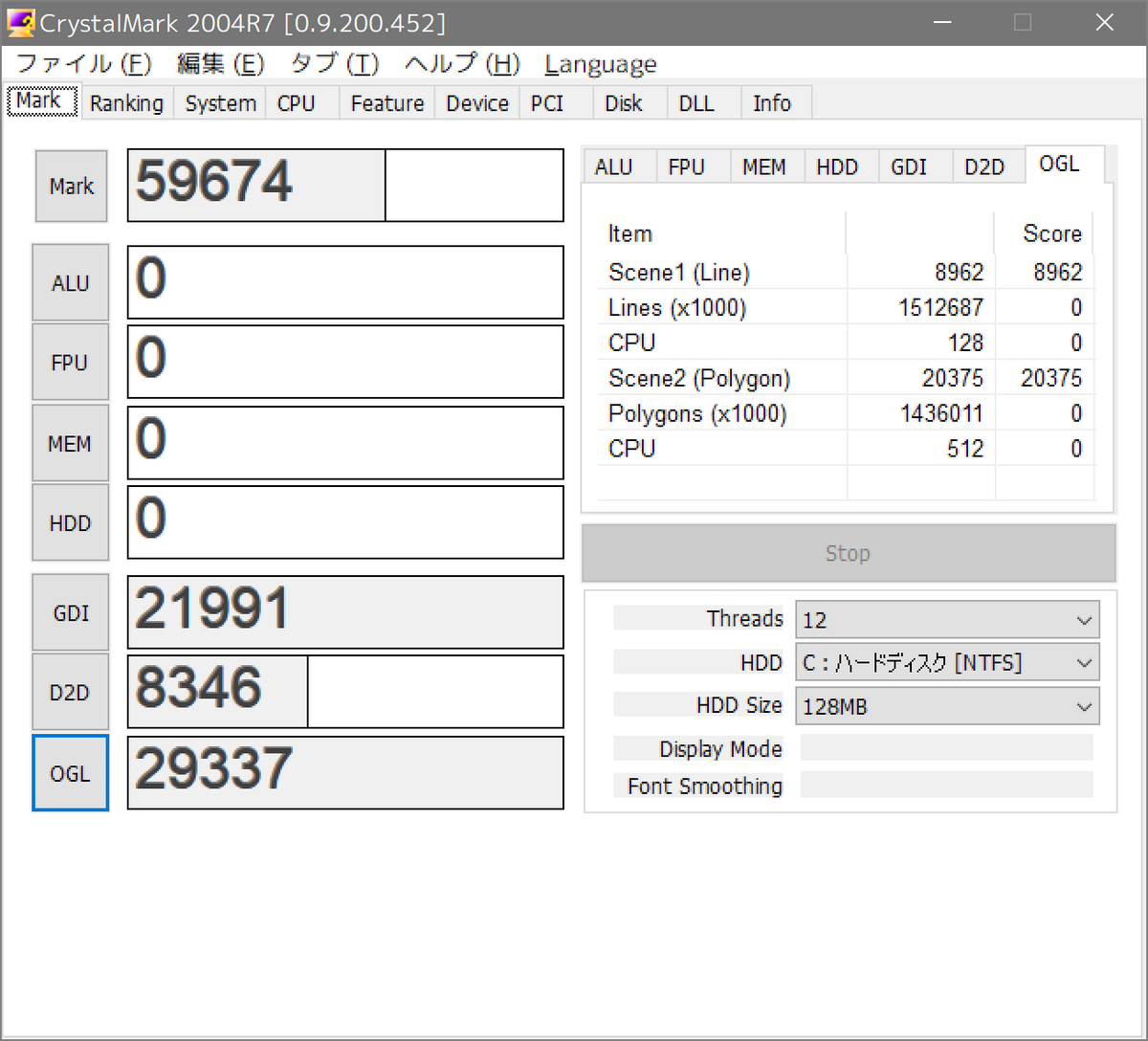 画面解像度はフルHDとして認識されてる模様です。GDI、D2D、OGLの数値はRX560、RX6600とほぼ変わりませんでした。