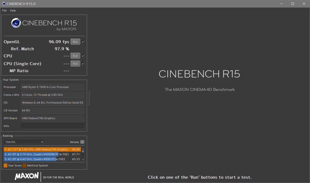 CPUが5600Xの時は、CPU:1797 cb, Single Core:252 cbでしたので、7600ではCPU 1.28倍、Single 1.17倍となりました。性能向上は微妙な感じです。